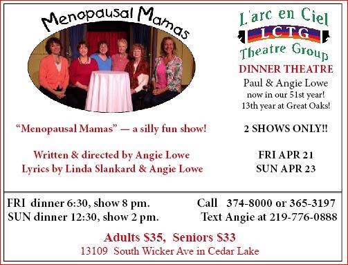 To find out at any time what's going on at LCTG.... or for info on our upcoming shows, call Angie at 219.365.3197 or call Great Oaks at 374.8000. You may also Email Angie at angielctg@sbcglobal.net SUBJECT: What's up at LCTG? or LCTG TIX!